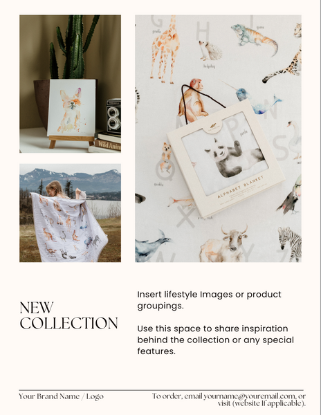 This is a fully editable Canva template to create your own wholesale line sheet / catalog. A (free) Canva account is required to edit this template. Once complete, you can export the template to different file formats such as PDF, JPG, etc.